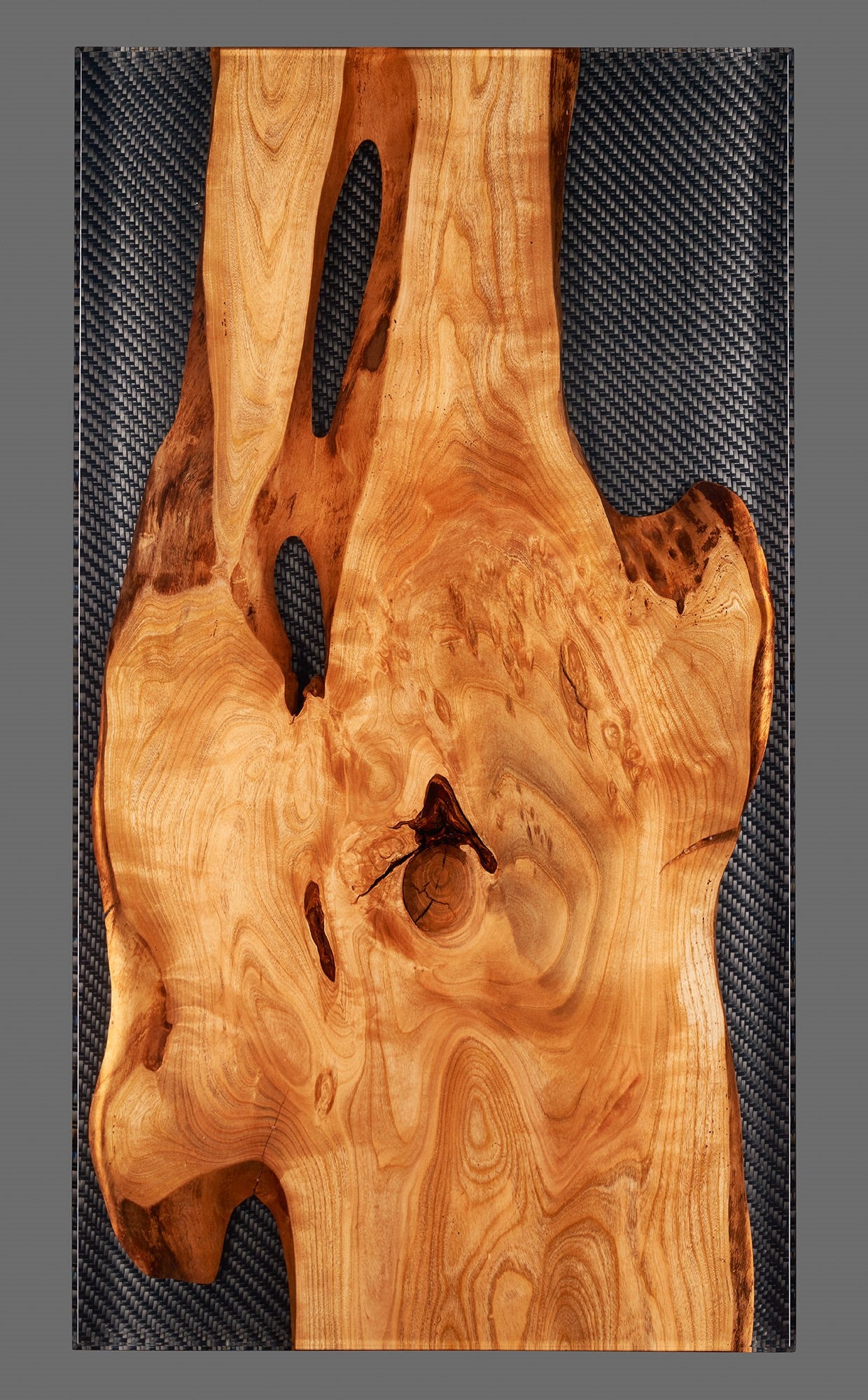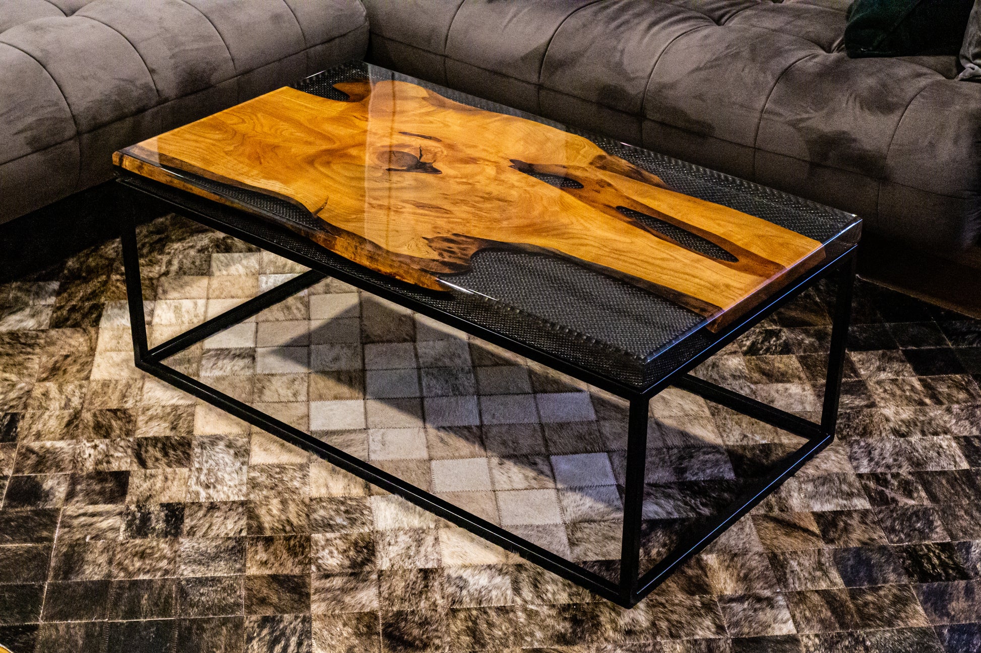 Gefertigt aus hochwertigem Carbon, widerstandsfähigem Epoxidharz und edlem Kirschholz, verkörpert dieses Möbelstück puren Luxus und zeitlose Eleganz. Die Kombination aus dem technischen Charakter des Carbons, der faszinierenden Tiefe des Harzes und der warmen, natürlichen Maserung des Kirschholzes schafft ein harmonisches Kunstwerk, das in jedem Raum zum sofortigen Blickfang wird.
